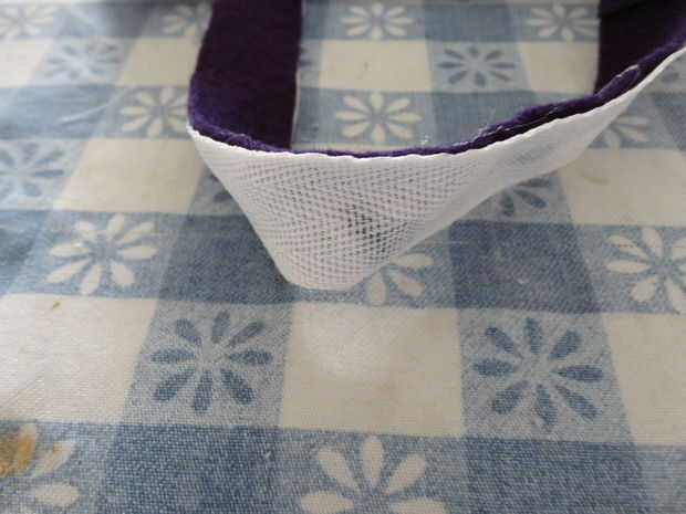 Paso 2 ~ cortar el fieltro en tiras de una pulgada (8) todo el camino hasta el lado largo de la pieza de fieltro. Tiras de pegamento caliente tres juntos luego hacen de nuevo, pero deben ser separados para ambos lados de la bolsa. Con estas dos tiras largas caliente pegarlos a los lados de la bolsa. Para hacer las asas más fuertes en vez de sólo haber sentido allí encontrar algún material como una camiseta o algo más y caliente encolarla ambos mangos. Luego poner fieltro nuevo y tápelo.