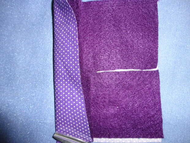 El fieltro puede estar caliente pegado en la parte posterior de la pieza de tela. Luego doblar sobre el borde un poco en él y coser. Pegamento caliente los bordes en el paraje entre las asas. Ahora estás acabado!