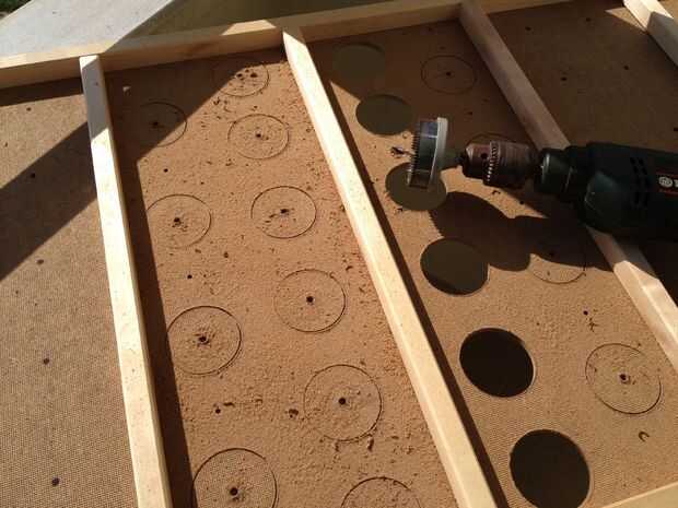 Donde ha marcado el inicio de perforación puntos. Primer simulacro desde el lado opuesto para unos milímetros sin pasar a través de todo el camino. Girar al otro lado y perforar. De esta forma que usted tendrá un agujero afilado limpiador.