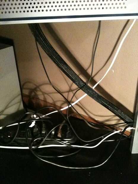 Nota que cuando ponen los cables en fundas Asegúrese de que los cables van al mismo lugar como si tienes unos cables de su computadora va a 3 diferentes monitorea tus mangas no será la longitud de los cables del monitor porque se va al mismo punto y el manga terminan siendo demasiado largo así que cortará sus mangas más cortas que los cables si ejecuta varios cables que van a lugares diferentes de arnt.