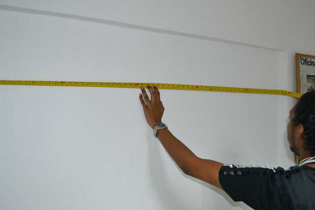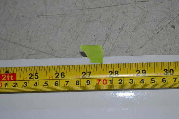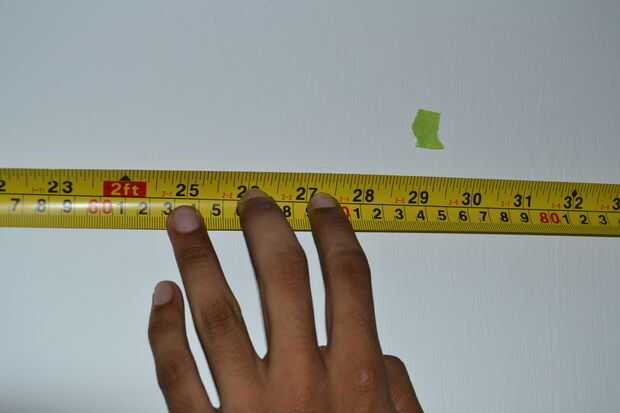 En este paso lo debemos hacer es medir la mitad del vinil y de la pared (imágenes 1 y 3), y luego marcar la mitad con un poco de cinta como se muestra en la imagen 2 y 4.