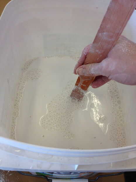 Una vez que el agua se vuelve lechoso y matas comienzan a llegar a la cima tiene una buena consistencia.