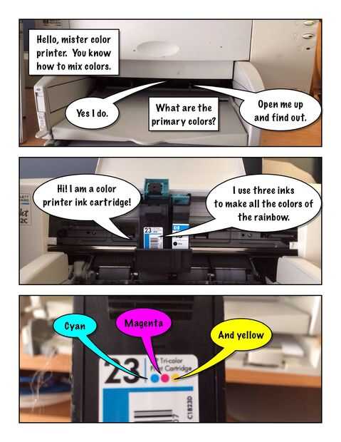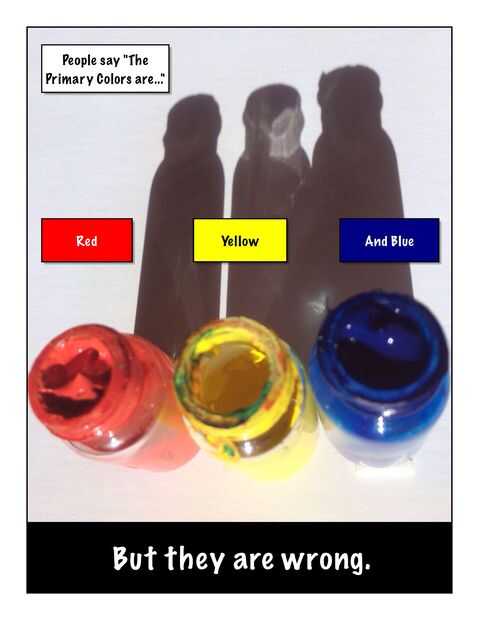 No escuches a la gente que le dirá que los colores primarios son rojo, amarillo y azul. Si ésos eran los colores primarios, impresoras a color se llenaría con rojo, amarillo y azul.