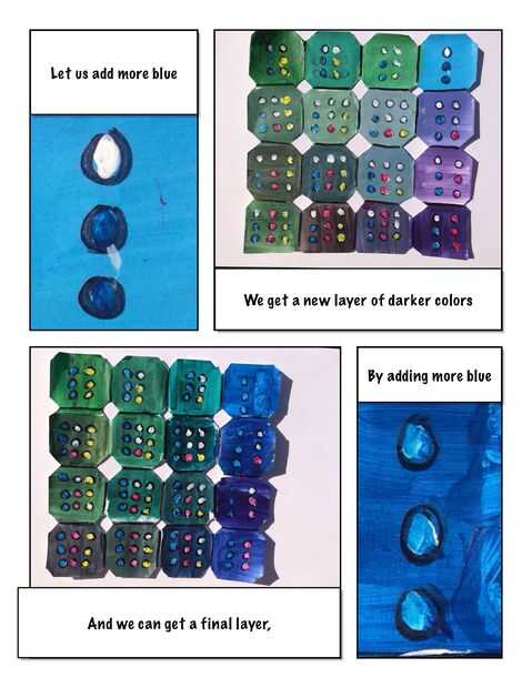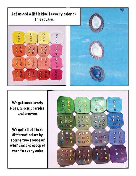 Haces tres plazas de color nuevo. Cada uno con cada vez más cian añadido.