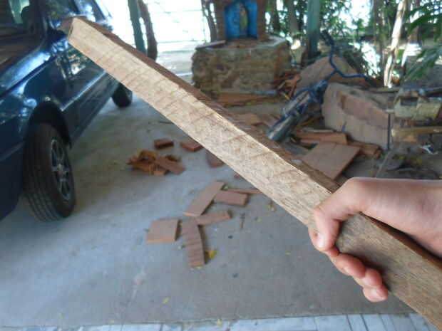Esto es fácil de hacer y fácil de usar hacha lanza que puede ser hecho en casa para prácticamente libre si usted sabe dónde buscar los materiales. es más bien un shuriken con un brazo largo, pero me gusta llamarlo simplemente un hacha de lanzar.  sól