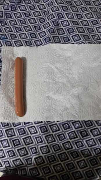 Después de eso, enrollar el perro caliente en la toalla de papel, asegurándose de mantener el hotdog bien rodado.