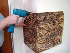Instalar los paneles a la pared, asegurándose de que el inglete es agradable y apretado y los bordes de los paneles estén alineados. Las partes pueden de los ingletes pueden superponerse pero se pueden ajustar.