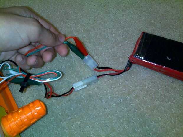 Conecte el cable rojo al cable de left(positive) y conectar ambos conectores a los paquetes de baterías.