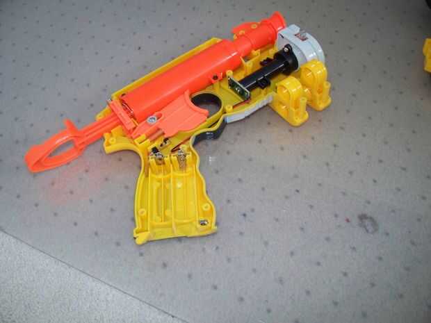 este es mi nerf nite finder han quitado los restrictores de aire y tienen streched afuera en la primavera tal vez dispara doble lo que hizo. bien así que aquí está el registro de im razón necesito ayuda tratando de convertir esto en un rifle para la