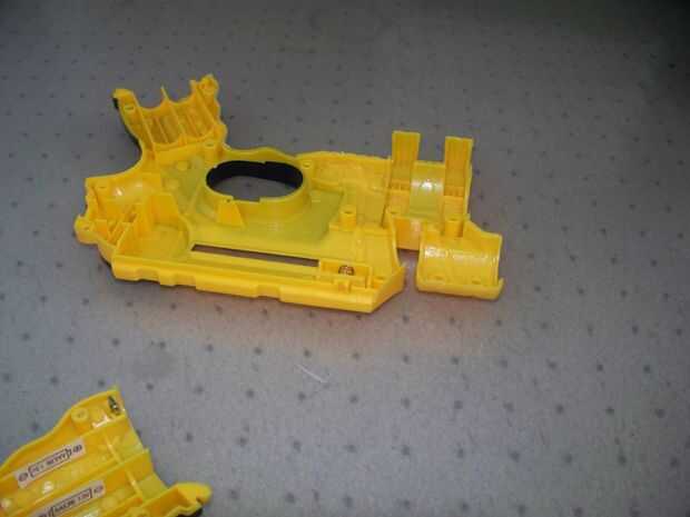 Tomar el cañón enfriado por ahora y vuelva a colocar el brazo en él. Asegúrese de que la pieza de plástico es el lado del resorte para arriba. Atornille el barril, asegurándose de la primavera gigante no se pega hacia fuera. Ahora, para la carcasa, nos referiremos a paso 3, donde los tres "PRECAUCIÓN puntos" fueron observados. Asegúrese de que la cerradura del carril táctico está en la parte superior de la cubierta plástica, sin nada en él. Empuje el resorte pequeño conectado a una pieza plástica que sostiene que el brazo es empujado hacia adentro. Ahora, tomar la otra caja y ponga suavemente en, velando especialmente por la cerradura del carril. Recomiendo atornillar ahora sólo un tornillo: el tornillo de arriba a la izquierda, cerca del brazo. Su arandela cuadrada será un poco de una molestia ahora: tomar un par de alicates y poner la lavadora en la pinza de plástico mientras la otra mano suavemente cuñas de la carcasa de plástico para arriba un poco. Ahora, asegúrese de que el gatillo no es acuñar hacia arriba y empuje la cubierta plástica, haciendo un ruido de clic. Compruebe para la arandela cuadrada y carril táctico y poner todos los tornillos de nuevo. ¡ Listo!