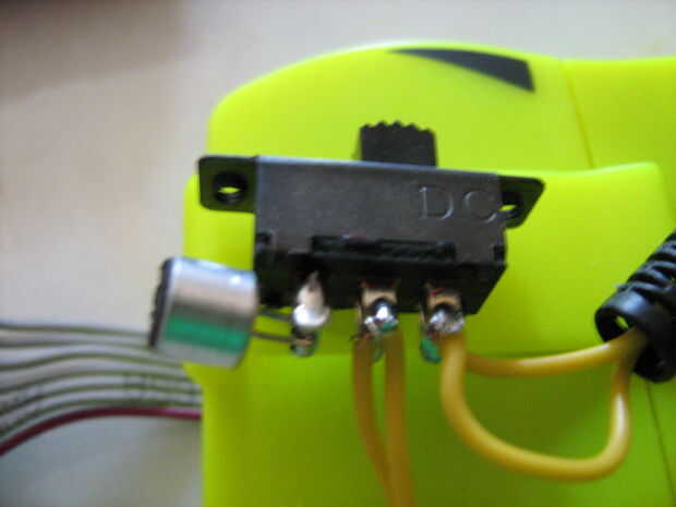 Soldar un cable (no importa cual) y el contacto de centro-izquierda, el otro cable a la centro-derecha.