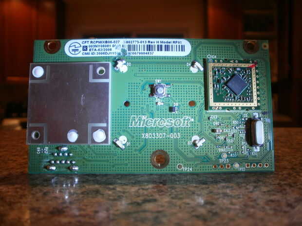 una vez que la xbox es aparte mira en la parte frontal de la caja de metal para el receptor inalámbrico. Debe ser pluged en la frente y se celebra con screws.this es donde usted tendrá que utilizar el torx-8 bit en los tornillos