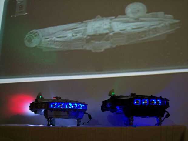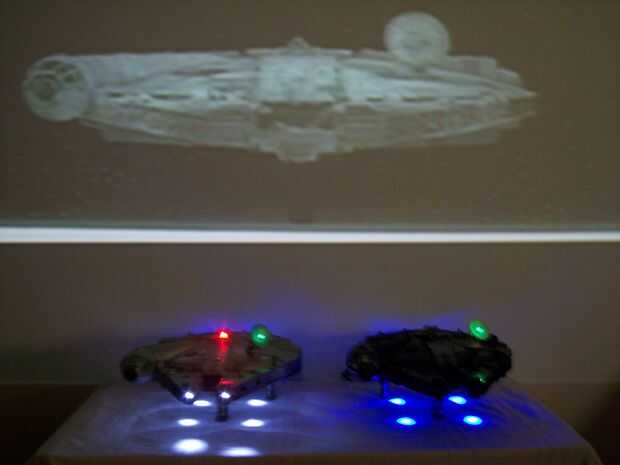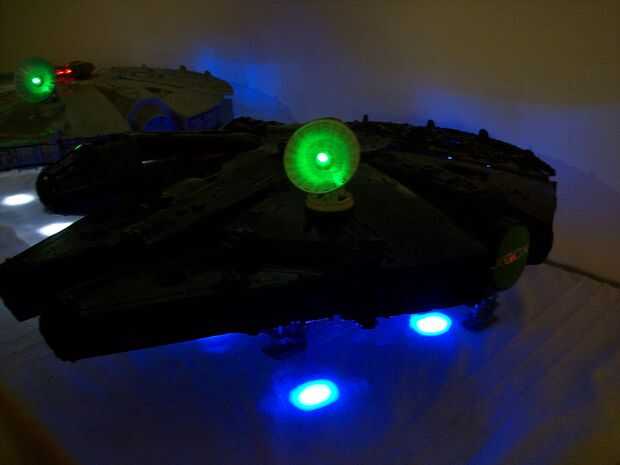 siempre he admirado el Halcón Milenario y quería una forma novedosa para mostrarlo.  El modelo puede ser montado en la pared y los colores cambiaron a través de control remoto - Adivina quien ha perdido el mando a distancia sin embargo!  De todos mod