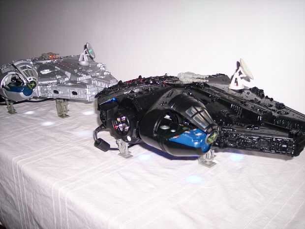 el Halcón Milenario es capitaneado por en 4 (una nueva esperanza) 5 (el Imperio Contraataca) y 6 películas de Star Wars (el retorno del Jedi) por Han Solo y su amigo Wookiee Chewbacker. Lo largo de los últimos 3 películas, el Halcón Milenario fue uti