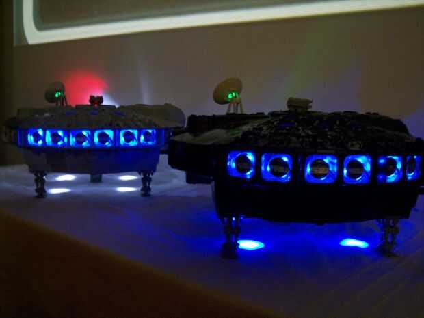 siempre he admirado el Halcón Milenario y quería una forma novedosa para mostrarlo.  El modelo puede ser montado en la pared y los colores cambiaron a través de control remoto - Adivina quien ha perdido el mando a distancia sin embargo!  De todos mod