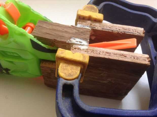 Cuatro de las piezas con pegamento de madera del pegamento y esperar un día