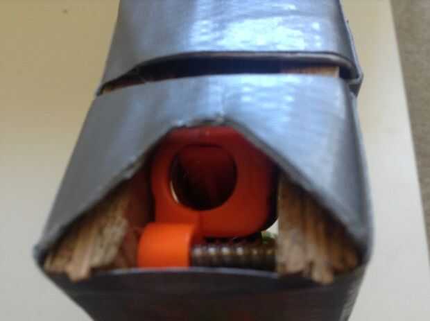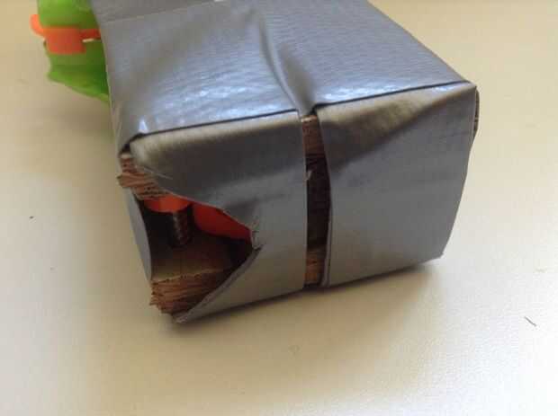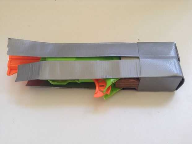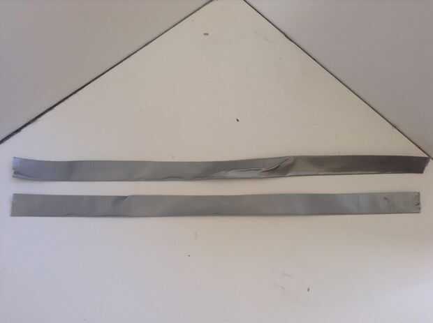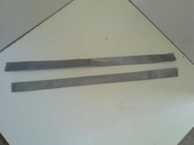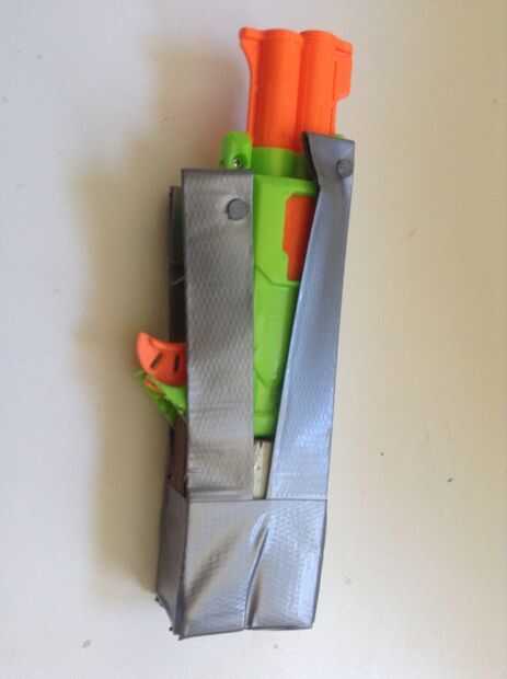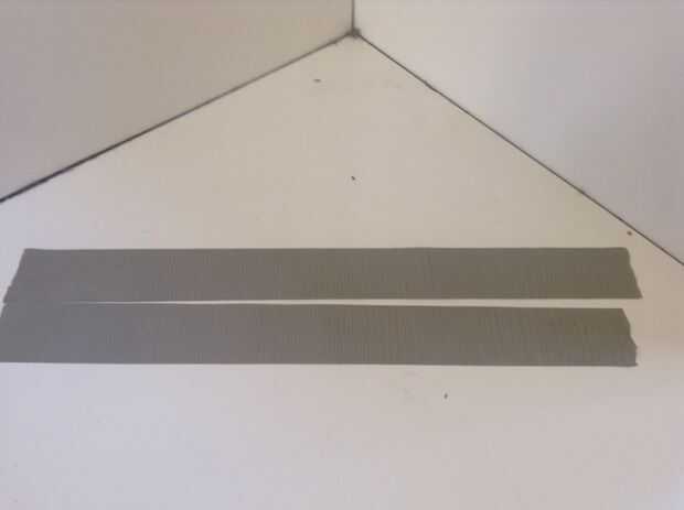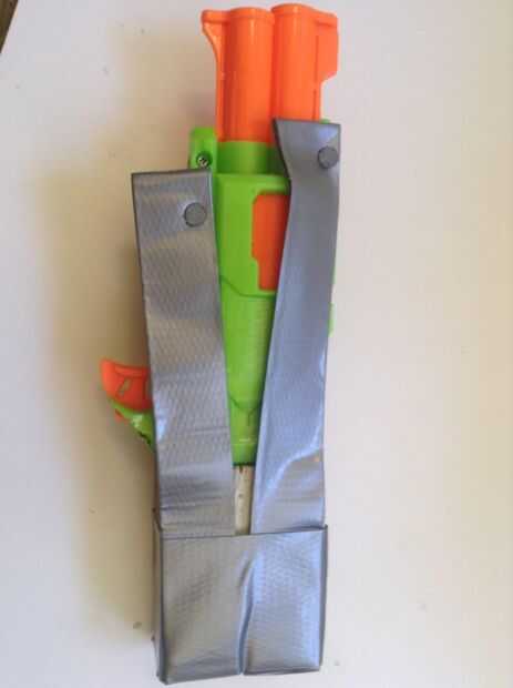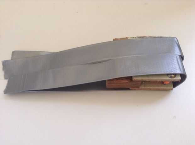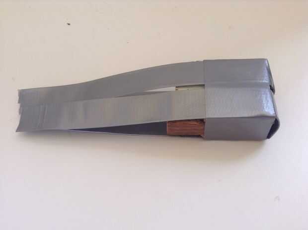 Cortar dos tiras de medio metro de cinta del conducto y doblar en dos, y luego doblar otra pieza alrededor de ellos (se puede también usar una pequeña cinta o algo de tela)