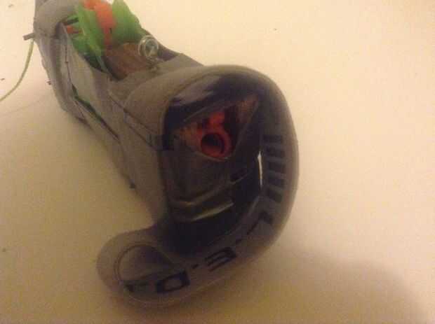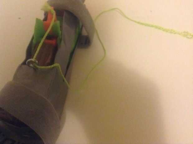Ajuste el tope de gatillo, perfore un orificio en el gatillo, atar una cuerda en el orificio del gatillo, atornille un tornillo de ojo, la cadena a través del hilo de rosca y colocar un anillo lo suficientemente grande como para caber en el pulgar. Asegúrese de que la cadena es del tamaño correcto para usted o su manera de usar la pistola (últimas fotos). Esto le permite disparar con su dedo pulgar en lugar de la otra mano