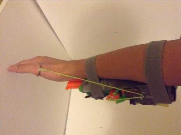 Hacer o usar dos bandas elásticas sobre el tamaño de su muñeca y el antebrazo cerca del codo