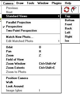 De la selección de barra de menú Google SketchUp--> cámara vistas estándar--> parte superior (Figura 1 - 2). Construirá el modelo en x e y llano.