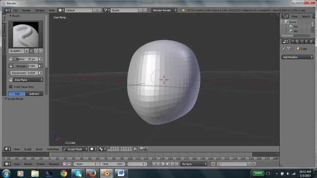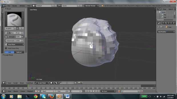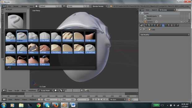 Para esta parte es bastante aleatorio. Tienes que utilizar el cepillo regular y elevar la parte superior y parte posterior de la cabeza donde el cabello suele presentar. Cambiar de cepillo regularmente para agarrar el cepillo. Entonces apagar x simetría haciendo clic en el pincel y haga clic en x simetría. Ahora quieren tomar el pelo al azar y tire hacia afuera para dar la larga efecto. Después de desea agregar otra multiresolución, interruptor para el modo de objeto, subdividir 2 veces y aplicar.