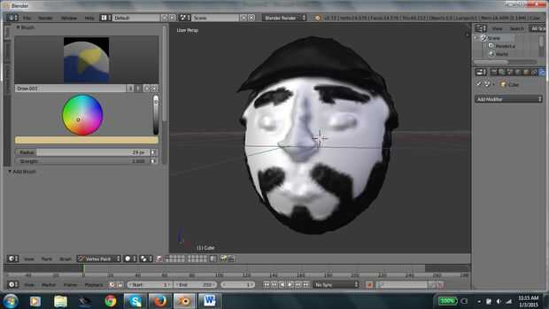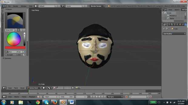 Ahora usted necesita cambiar a pintura de vértice. Elija cualquier color que desee para el cabello. Ahora quieres que pase el ratón sobre el pelo de color. Continuar haciendo esto y cambiar de colores para añadir color a la cara. Si usted puede encontrar una mejor manera de añadir color a ser mi invitado, creo que pintura vértice no es el camino a seguir por el pequeño detalle.