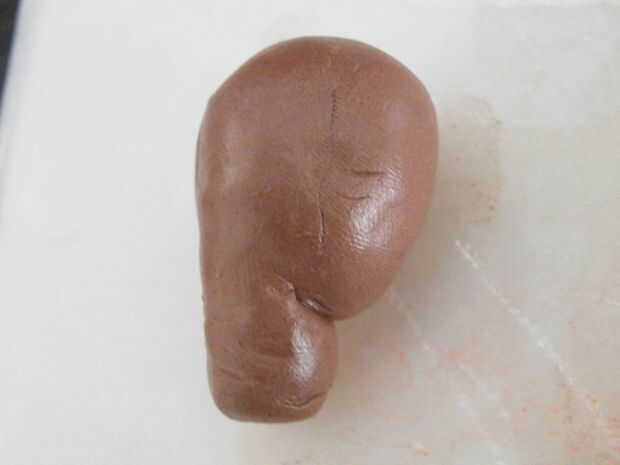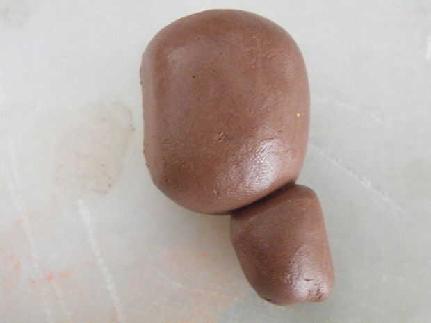 Pegar esto en la pieza en forma de huevo para formar la barbilla.