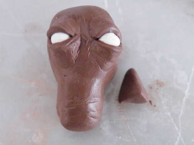 La forma para hacer cualquier tipo de nariz que desee y colocarla sobre el cráneo - entre los ojos y justo por encima de la costura entre la barbilla y del cráneo.