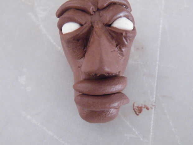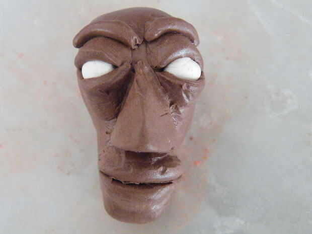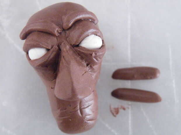 Alisar los lados exteriores de las salchichas en la superficie de la barbilla y el cráneo. Una herramienta estrecha (destornillador fino, palillo) es útil aquí alisar la parte superior del labio superior en la piel por debajo de la nariz.