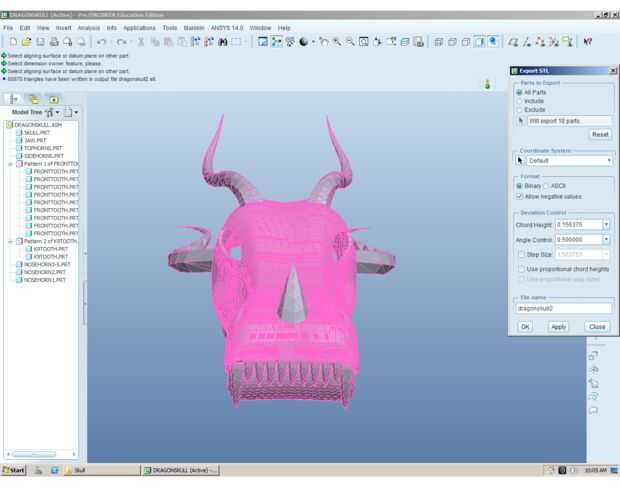 Luego puede o bien imprimirlo usted mismo en su propia impresora 3D, si no tienes los recursos para hacerlo, hay varios sitios como Shapeways que pueda subir el modelo, por lo que puede imprimir para usted. Quiero dar un muyespecial agradecimiento al equipo de Instructables y audreyobscura que me imprime una copia para compartir con ustedes! El cráneo de dragón visto fue impresa en una impresora 3D de Objet Connex 500. También, incluí el archivo STL como la segunda imagen, me deja saber si esto funciona para usted!