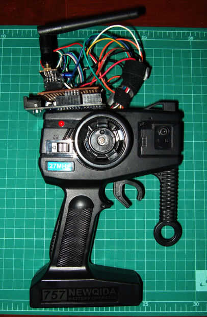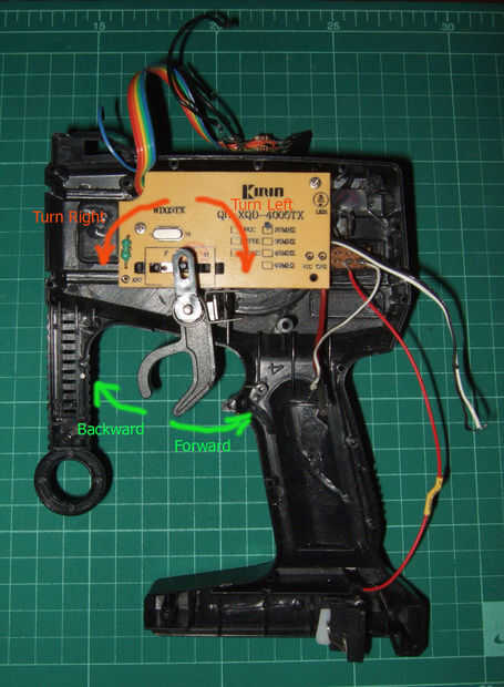Para giro derecha/izquierda controlada por volante como coche real. Para ir adelante/atrás controlado por disparador tirando hacia delante o hacia atrás el pulsador.