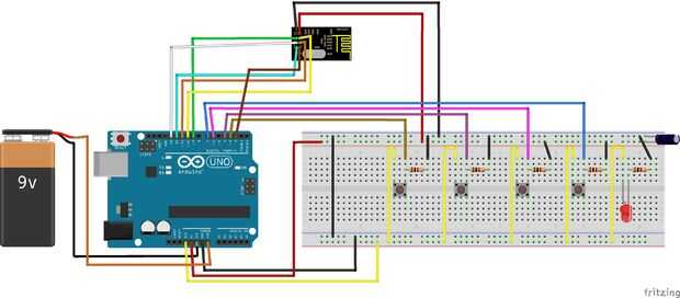 * Es necesario añadir 0.1 microF nRF24L01 módulo pin Vcc/toma de tierra ya que el módulo necesita alto voltaje continuo de actual y estable.