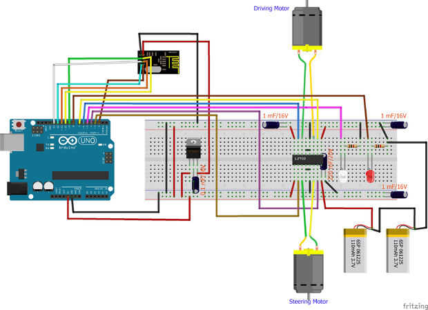 * Es necesario añadir 0.1 microF/16V nRF24L01 módulo pin Vcc/toma de tierra ya que el módulo necesita alto voltaje continuo de actual y estable.