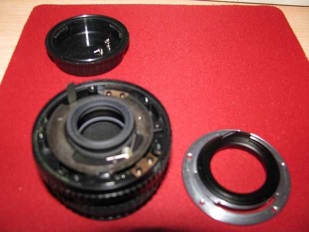 Una vez que se retiraron los tornillos, la placa con la bayoneta debe ser capaz de levantar claro - tenga cuidado ya que algunas lentes pueden tener partes resorte escondido para empujar los agujeros en los ojos de los incautos... mina no por lo que todo estaba ok.