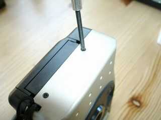 El PN2011 es bastante fácil de entrar. Primero saca los dos tornillos en el lado de la cámara y ponerlos en una bandeja de las piezas. Generalmente lanzo un imán en la bandeja de partes así. Los tornillos se adhieren al imán y son menos propensos a volar en una dimensión alternativa.