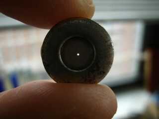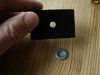Una vez que tenga el orificio en la parte posteriora, su tiempo para pegar en su caja. Utilicé la caja de alguna vieja película de iZone. Pegué mi agujero de alfiler en el cuadro antes de poner la caja en la parte posterior.