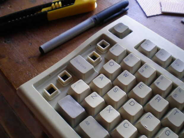 -tratar de recoger algunos puntos donde LEDs brillan entre las filas de las teclas, por lo que la luz consigue extender debajo de ellos.
