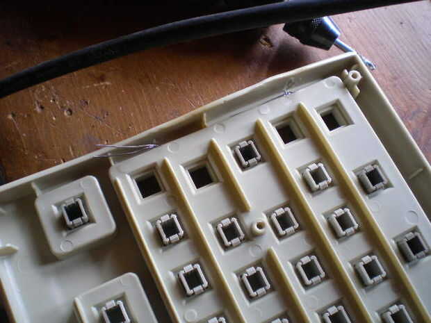 Ahora, en la parte inferior del teclado (con el controlador) ubicar GND y VCC cerca del conector donde se mete el cable en. Utilice un voltímetro para esto. Encontré 4.5V tensión de alimentación. Ni idea si esto es un teclado "estándar" de tensión.