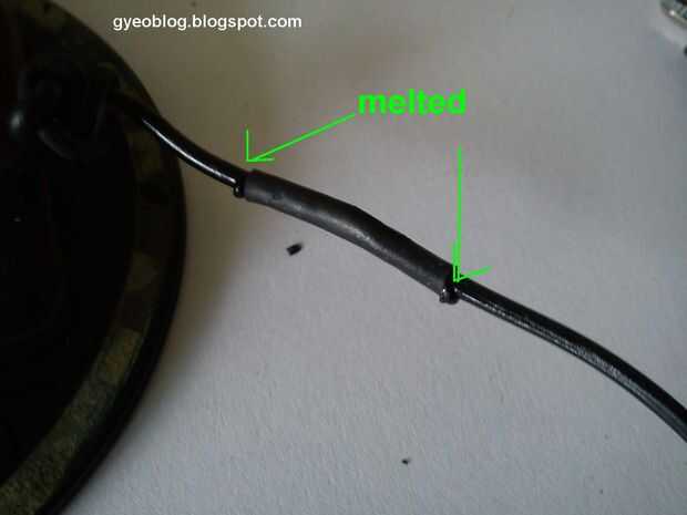 Poner en algún termo retráctil para proteger a exponer cables, utilice un encendedor para el encogimiento de calor y ser extra cuidado de no sobre calentarlo!!!!!! Accidentalmente sobre calentar y derretir el cable. tratar de mantener el fuego cerca de 1,5 pulgada lejos del encogimiento del calor, realmente directamente me quema el encogimiento del calor que causa derretir de goma del cable.