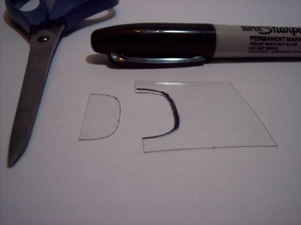 Traza el borde frontal del coche en una pieza plana de plástico de embalaje transparente. Corte la forma y los bordes de la arena suave. Fondo color ambos lados utilizando la máquina de permanente y deje secar. Por último, pegue el separador en la parte inferior del chasis usando pegamento.