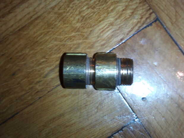 Aquí es un accesorio de compresión simple se puede construir usando sólo 2 macho - femal accesorios, arandelas de goma de 2 o más y 2 arandelas de acero. Es bastante sencillo -> la goma arandelas se intercalan entre las dos conexiones y todo el conjunto se coloca en el tubo de salida. Una vez en lugar aprieta las conexiones y que comprime las arandelas de goma obligándolos a formar un sello alrededor del tubo.