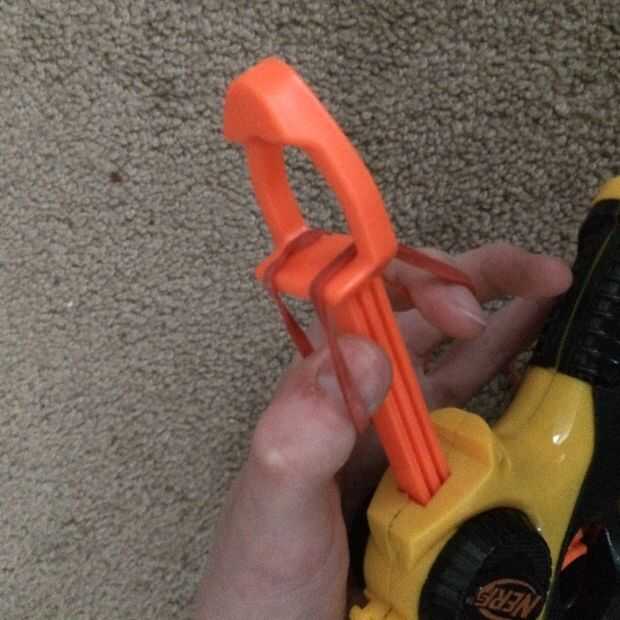 este es mi nerf nite finder han quitado los restrictores de aire y tienen streched afuera en la primavera tal vez dispara doble lo que hizo. bien así que aquí está el registro de im razón necesito ayuda tratando de convertir esto en un rifle para la
