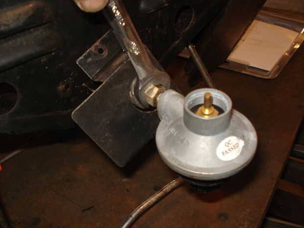 Desenroscar el soporte de la válvula de gas propano de la parrilla y luego Desenroscar la válvula de la hornilla.