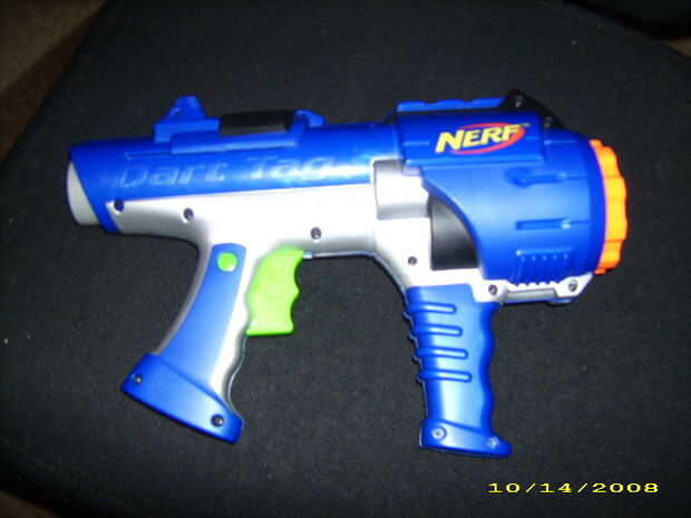 skilletI me voy a mostrar como a mod la nerf hiper fuego.Primero necesitas la pistola.Entonces necesitas una sierra.Pegamento caliente pistola y cinta adhesiva.Lo negro en la parte posterior de la recon cs6 y el nerf raider.Paso 1: Esto es opcional.