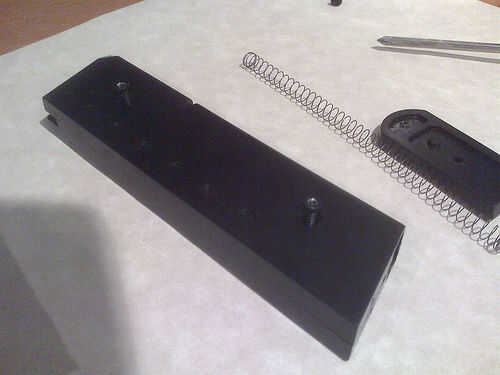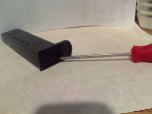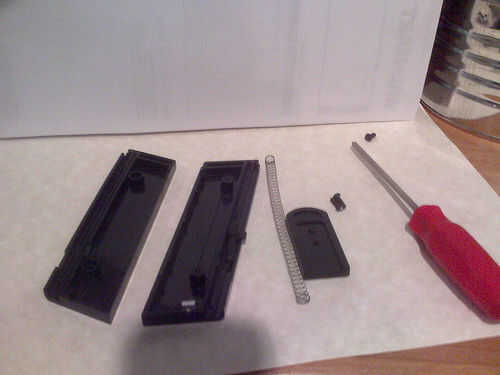 Primero desea Extraiga el cargador de su arma pulsando el botón situado cerca de su dedo pulgar sobre el arma. Después de haber eliminado, conseguir un destornillador y extraiga el tornillo en la parte inferior de la revista. Esto hará que la pieza inferior para despegarse y el resorte para saltar, asegúrese de que no pierdes ninguna de las partes. A continuación Quite los dos tornillos en el lado de la revista y apalanque la revista abierta suavemente con un destornillador de cabeza plana. Usted verá un peso de plomo grande que da a la revista su influencia, si usted no se preocupe la revista pesa dos onzas menos proceder a eliminarlo. Si te gusta tu revista a ser muy pesado luego parar ahora y volverlo todo juntos, esto no es para ti. Esta área abierta es donde el extra 65 BB se llevará a cabo. Ahora se hacen con el primer paso. Continúan modificando la revista.