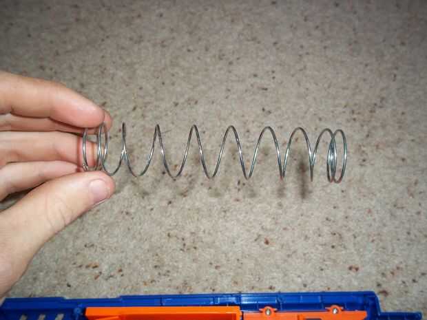Por último, el resorte del gancho agarrador y darle abit de un tramo. la primavera es, en definitiva, lo que proporciona la energía. como ya nos hemos acortado la brecha en la que el resorte se puede comprimir demasiado, si estiramos a abit, puede sólo hacer más poder puede no?!