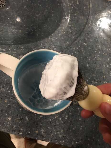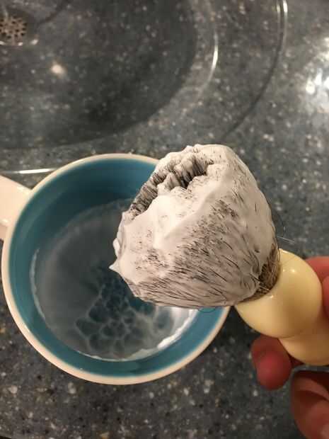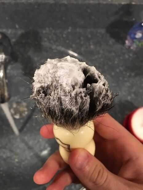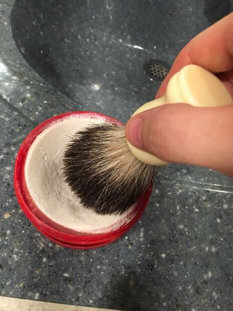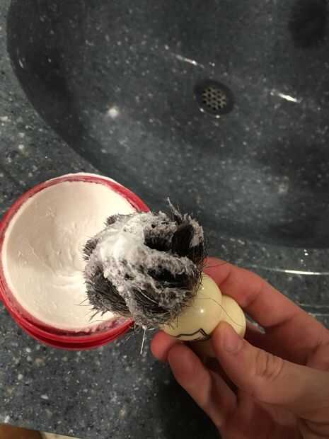 - Tomar el pincel y carga de jabón sobre los pelos en movimiento circular