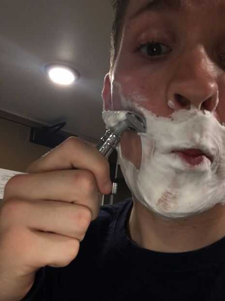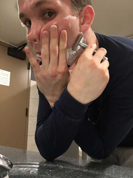- Desde la parte superior de la cara y afeitarse con el grano del cabello