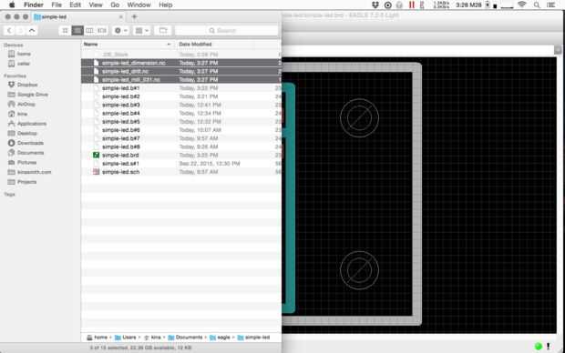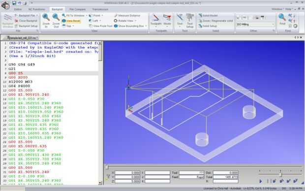 Una vez establecidas las configuraciones, presione Generate, y debe producir 3 archivos en la carpeta de los archivos SCH y BRD. Será marcados _dimension.nc, _drill.nc y _mill_031.nc de nombre de archivo. Se trata de su archivo de 0.031 molino, su taladro de archivo y el archivo de dimensión. Abrir en un editor de texto y verás el código de g. Abrir con un visualizador de código de g, tales como camoticsy usted debería ver las trayectorias de herramienta.