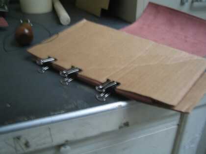 Primero quería forma el interior de la aleta así que doblé en mi línea anotada y fijada hacia abajo. Asegúrese de que tiene algo entre sus pinzas y cuero por lo que no tiene ninguna marca fea en él.